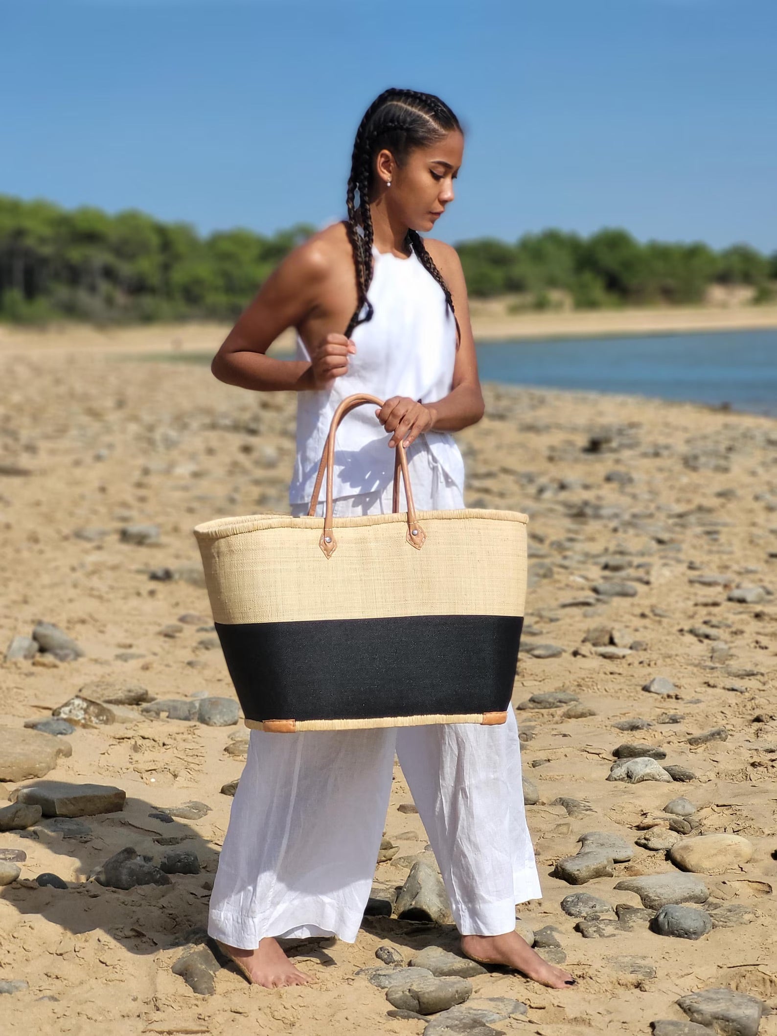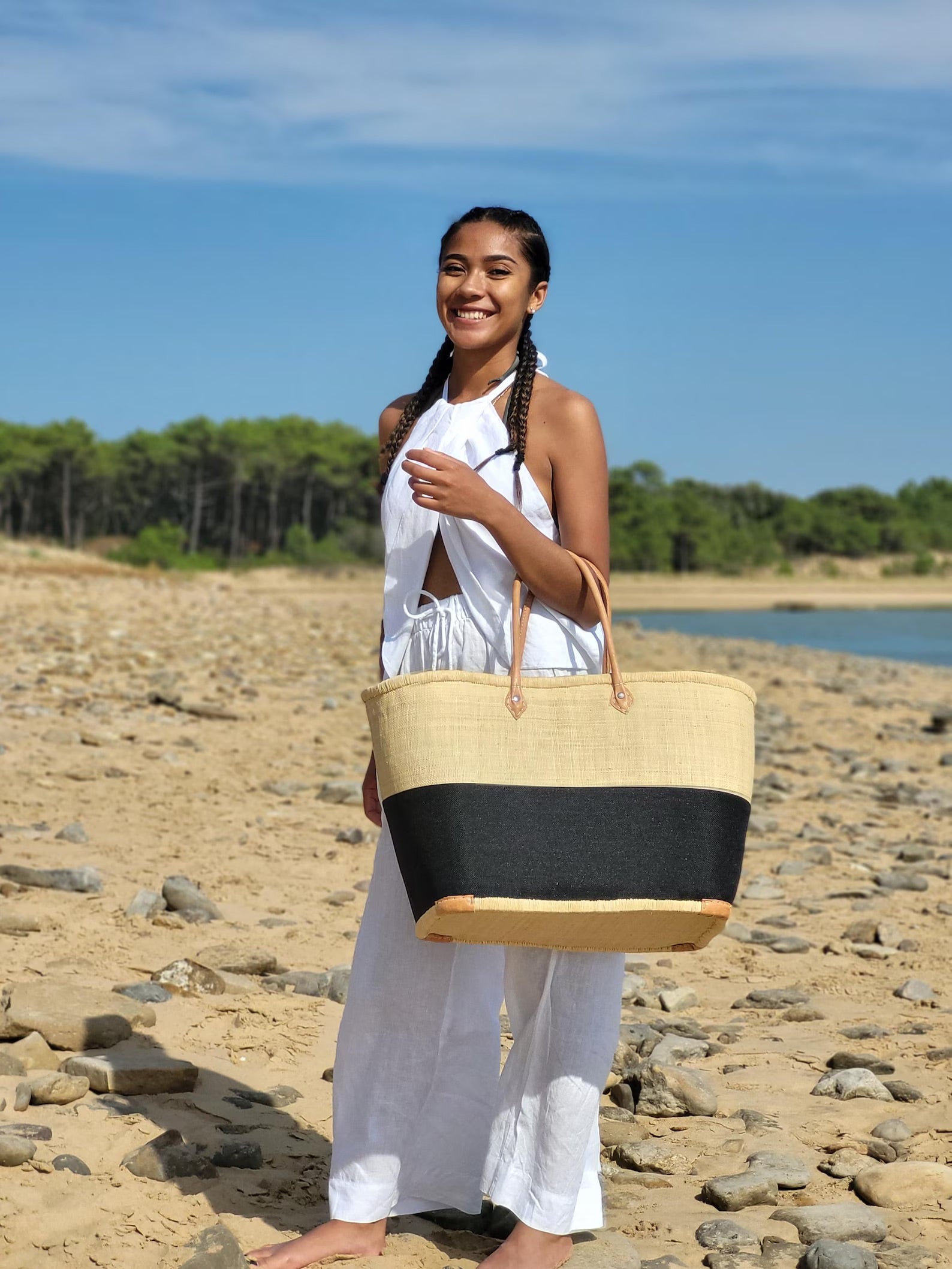 Le panier tressé bi-color est un incontournable au style naturel, idéal pour vos escapades ou vos journées en ville.